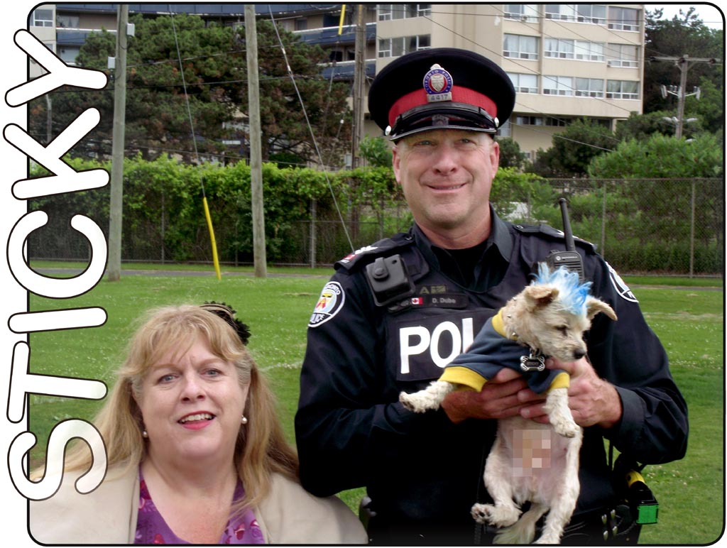 Sticky and his mother with Kathleen Wynne at the 2015 Canada Day picnic. See also Sticky's latest (June 25, 2017) picture, post-haircut.