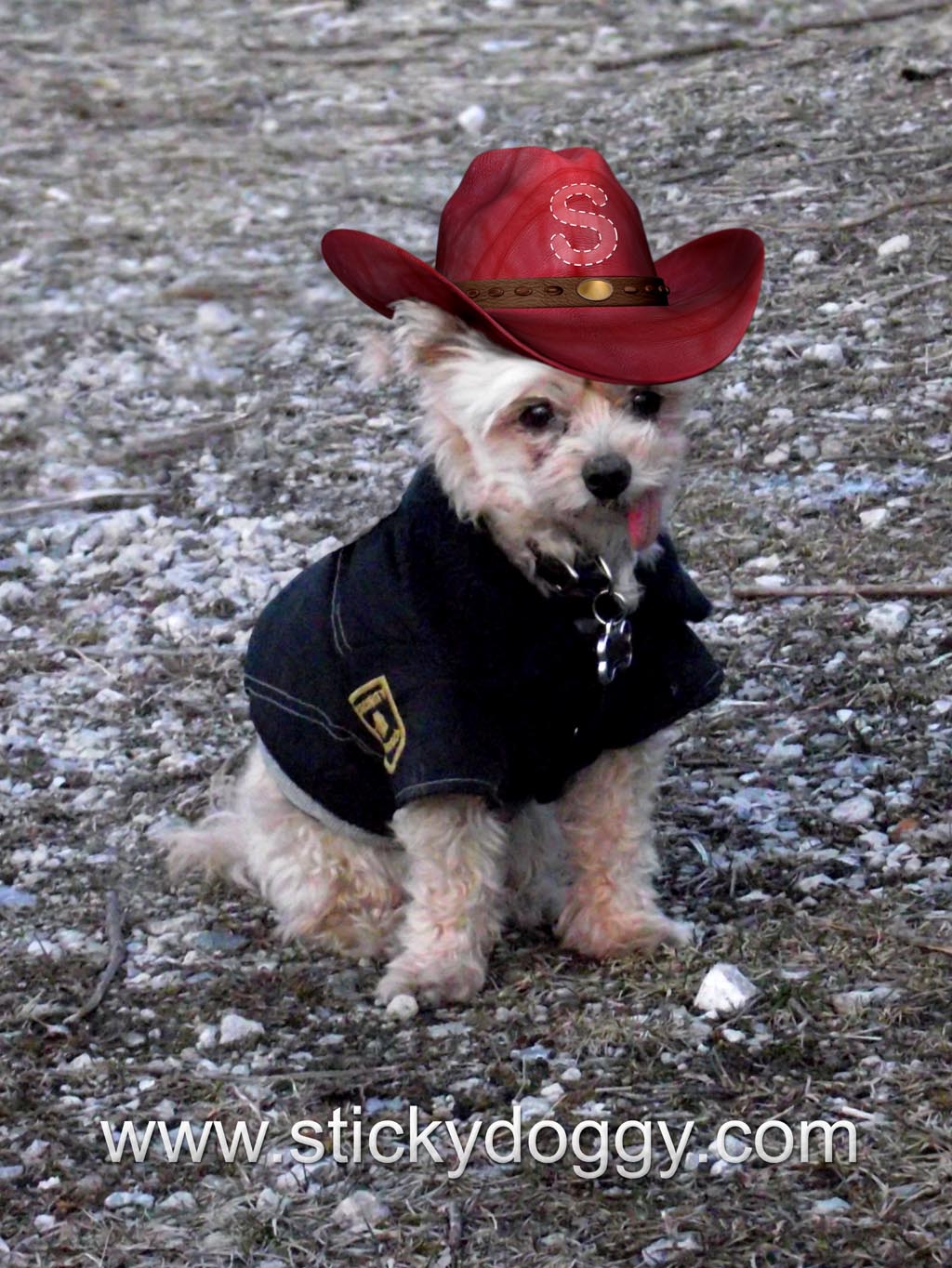 Here's our Sticker in a rootin' tootin' picture that we made on Easter Sunday (April 5, 2015). There's a matching red leather holster that goes with this outfit, but we haven't put it in yet.