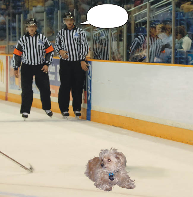 January 2010 - we were working on this picture where Sticky is causing a disturbance at the "Ice Dogs" hockey game.
