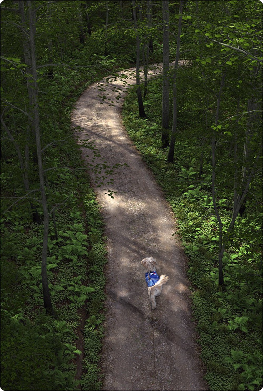 This picture of Sticky hiking through the woods was based on wonderful computer models by Howie Farkes.