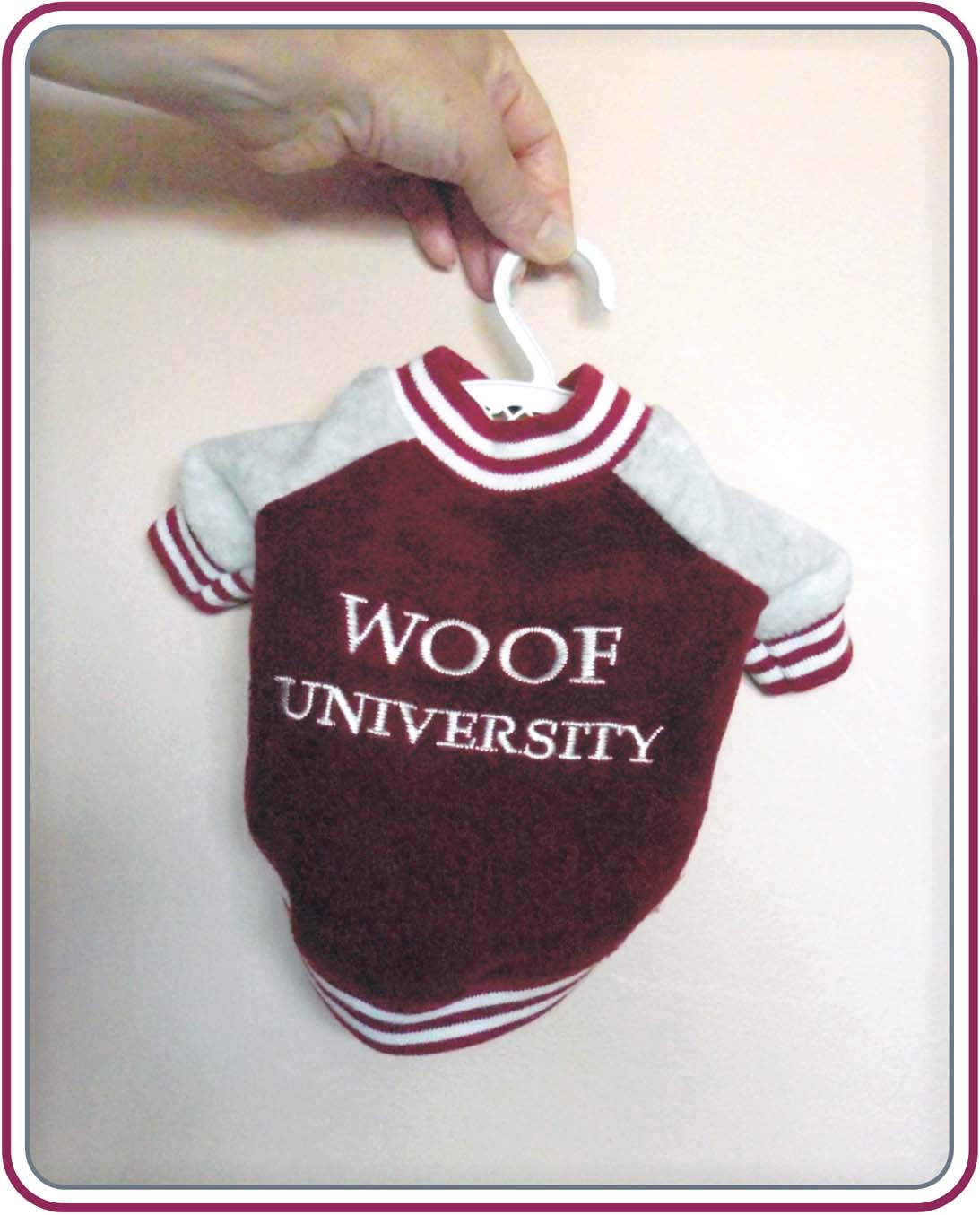 Sticky's miniature "Woof University" jacket. Sticky a few seasons playing college ball south of the border on full scholarship... until he got expelled for carousing and generally making a nuisance of himself on campus... This test page was first posted on February 17, 2013 - "Family Day" in Ontario, Canada.